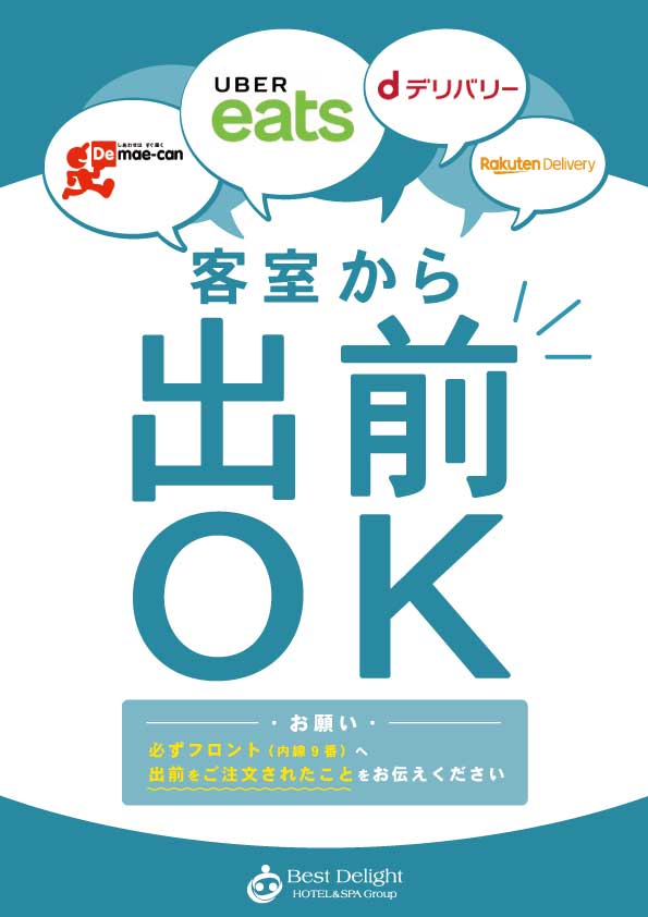ご注文後は、フロントスタッフまで出前を利用された旨をご連絡ください。