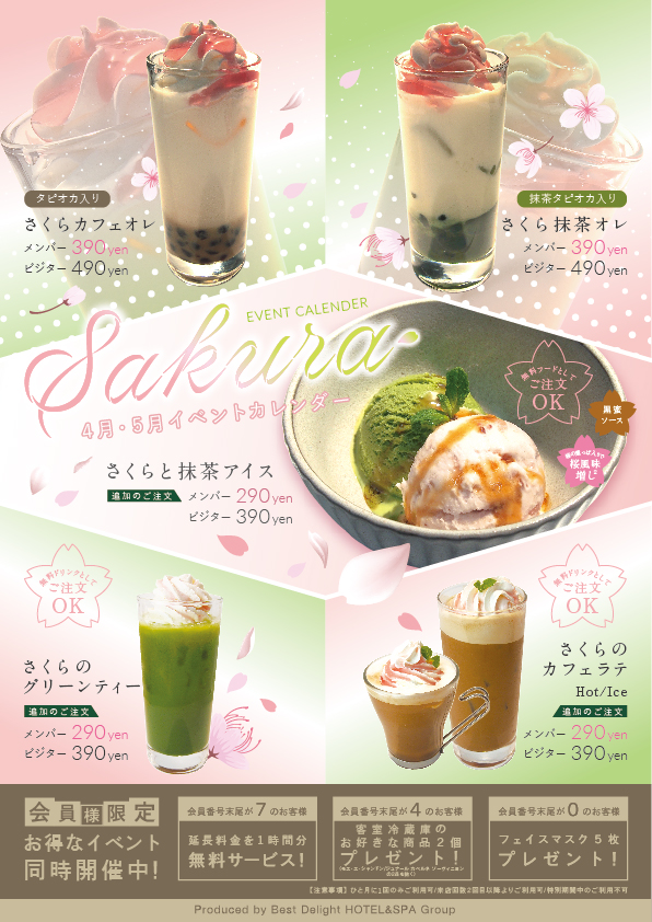さくらと新緑の季節を思わせる、上品なスイーツをご用意しました。