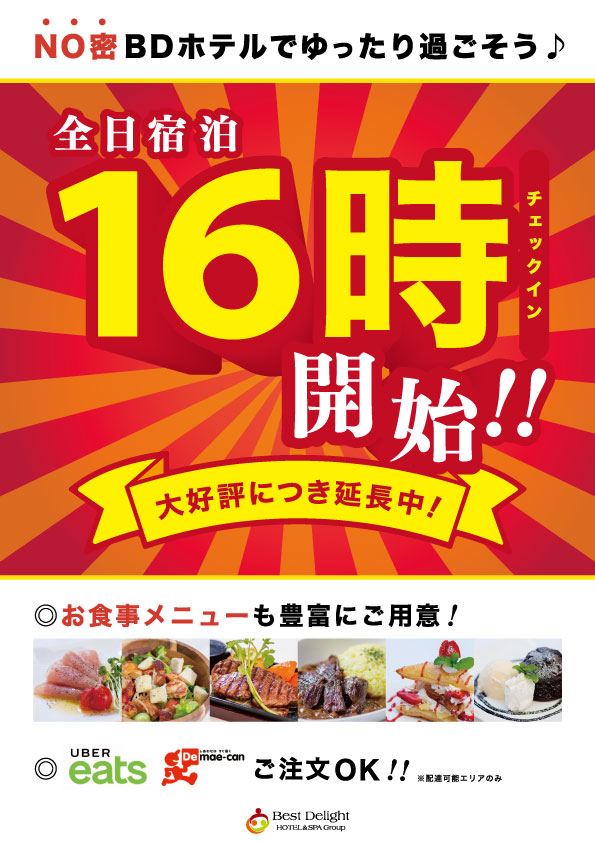 【期間限定】ご宿泊16時チェックインキャンペーン実施中!