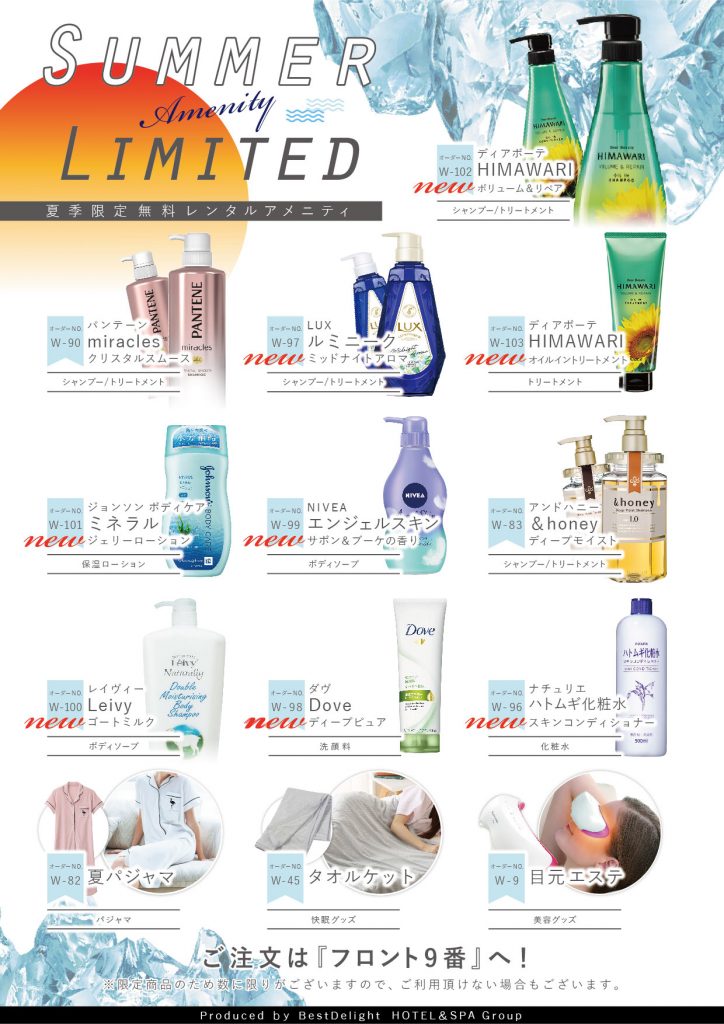 夏季限定!無料レンタルアメニティー