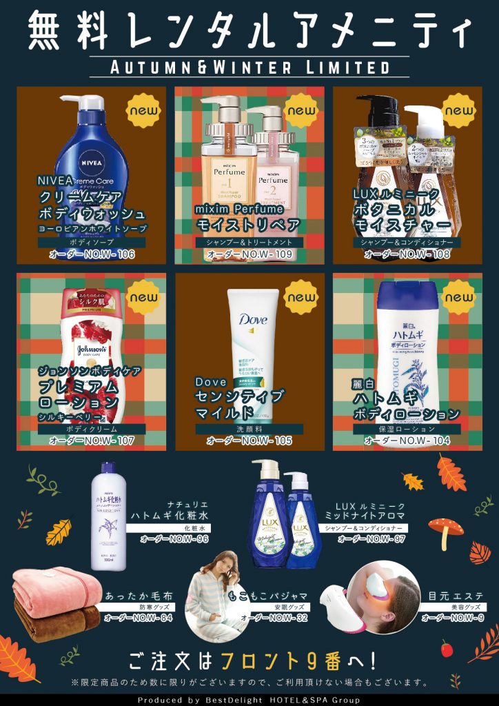 【季節限定】秋冬の無料レンタルアメニティー
